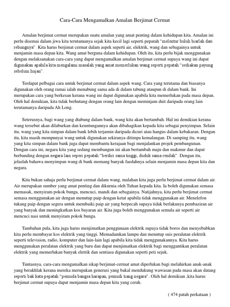 Karangan Langkah Langkah Berjimat Cermat